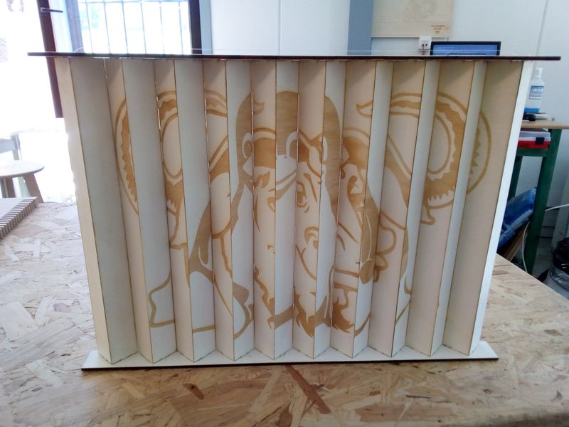 Après la gravure et la découpe, passage à l’affleureuse pour avec des lamelles avec des tranches à 45° –