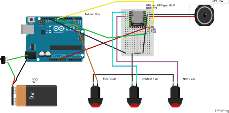 Création d'un baladeur MP3 à partir d'un Arduino Uno et un DFplayer mini. Le but est de créer un objet de démonstration, donc entièrement démontable et modifiable.