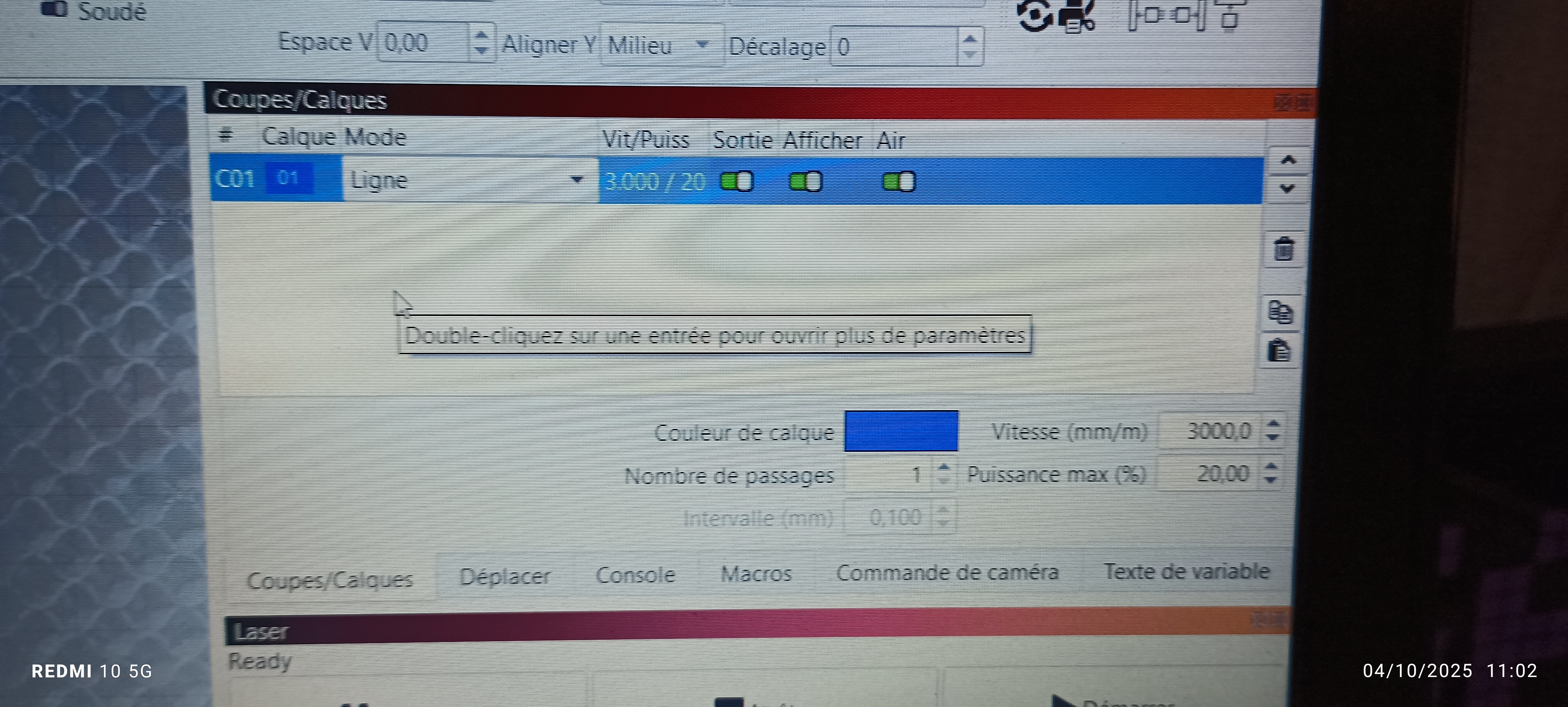 Vitesse : 3000 mm/min