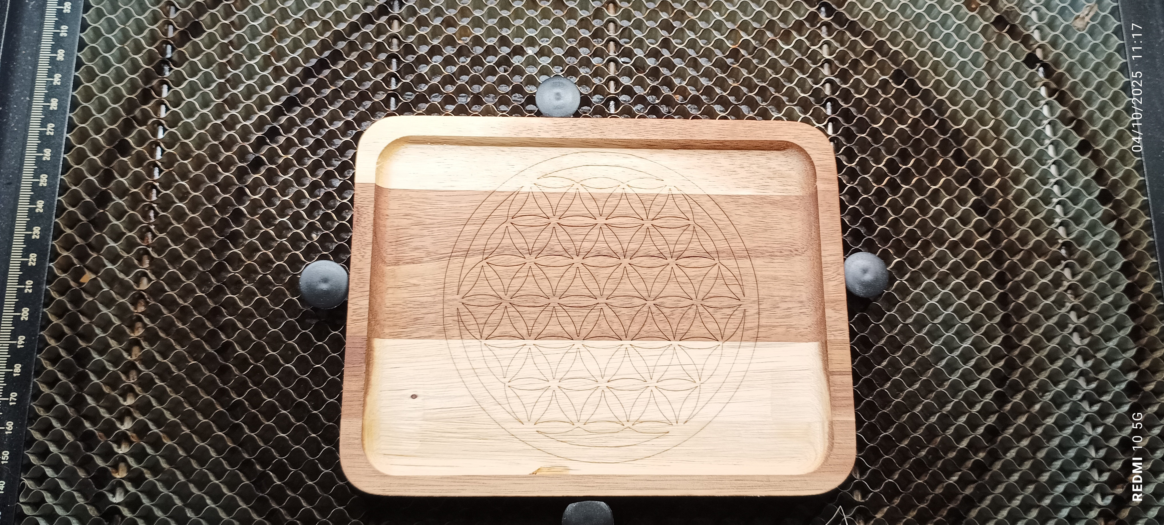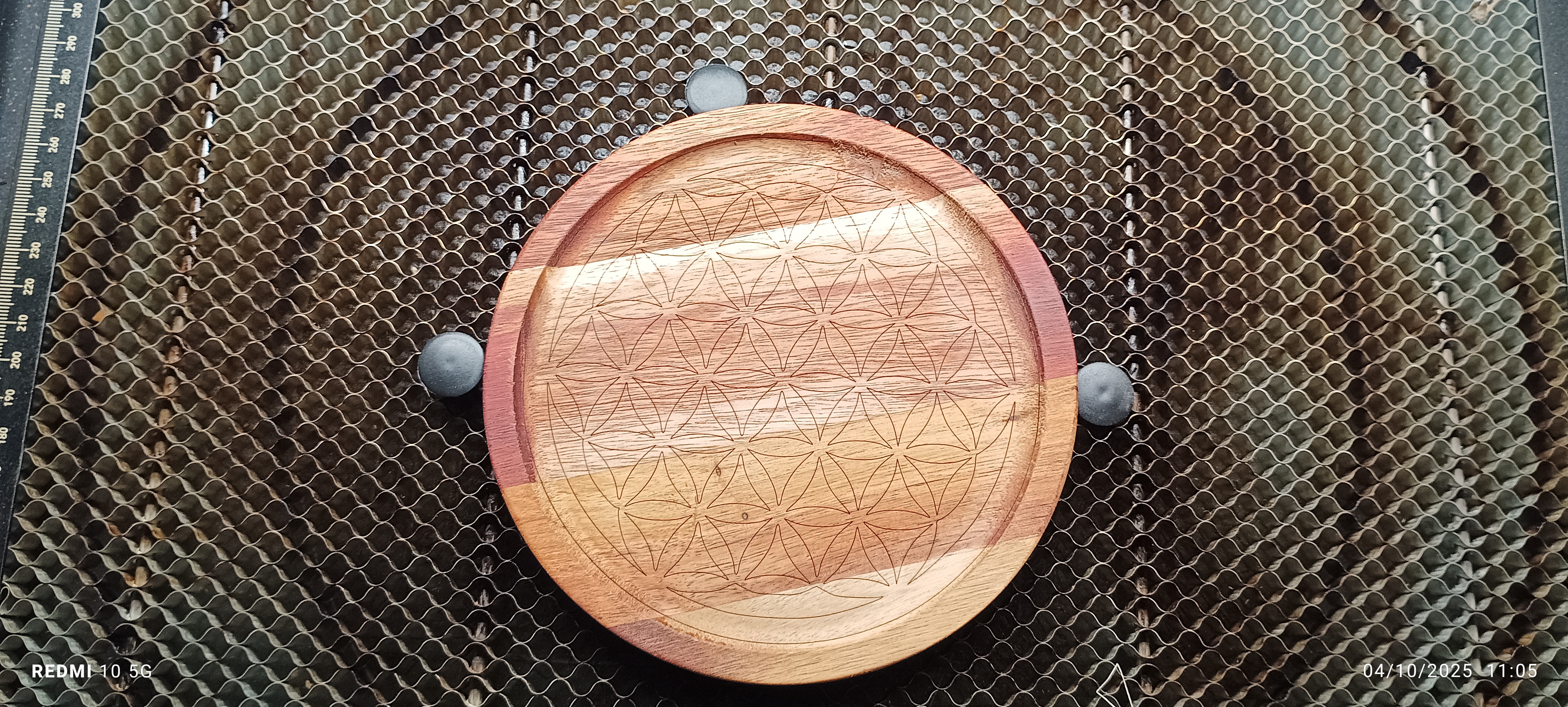 Gravure fleur de vie sur acacia