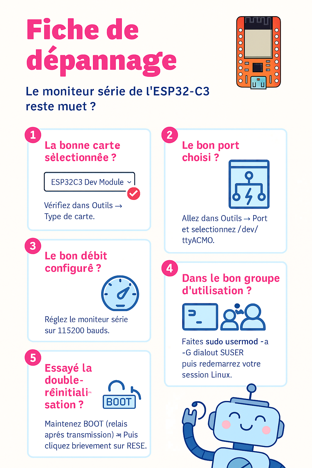 ➡️ Appuie manuellement sur le bouton RESET de la carte si besoin.